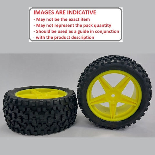RC Car Wheels Hobby - Rim Colour Yellow 5 Spoke - Black Eighth Scale - Plastic Wheel 1 pack (2 pcs) Available Now | Item Discontinued - Up to 1 may be ordered online. No backorders. Please contact us if you need a larger quantity Regular price