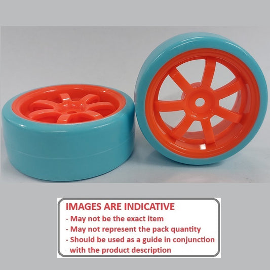 RC Car Wheels Hobby - Rim Colour Fluoro Orange 7 Spoke - Blue Tenth Scale - Plastic Wheel 1 pack (2 pcs) Available Now | Item Discontinued - Up to 1 may be ordered online. No backorders. Please contact us if you need a larger quantity Regular price